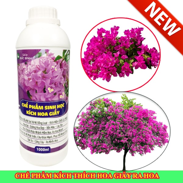 - Chế phẩm sinh học kích hoa giấy ra hoa đồng loạt của Sinh học Đức Bình là loại phân bón hữu cơ có tính axit rất phù hợp với cây hoa giấy.